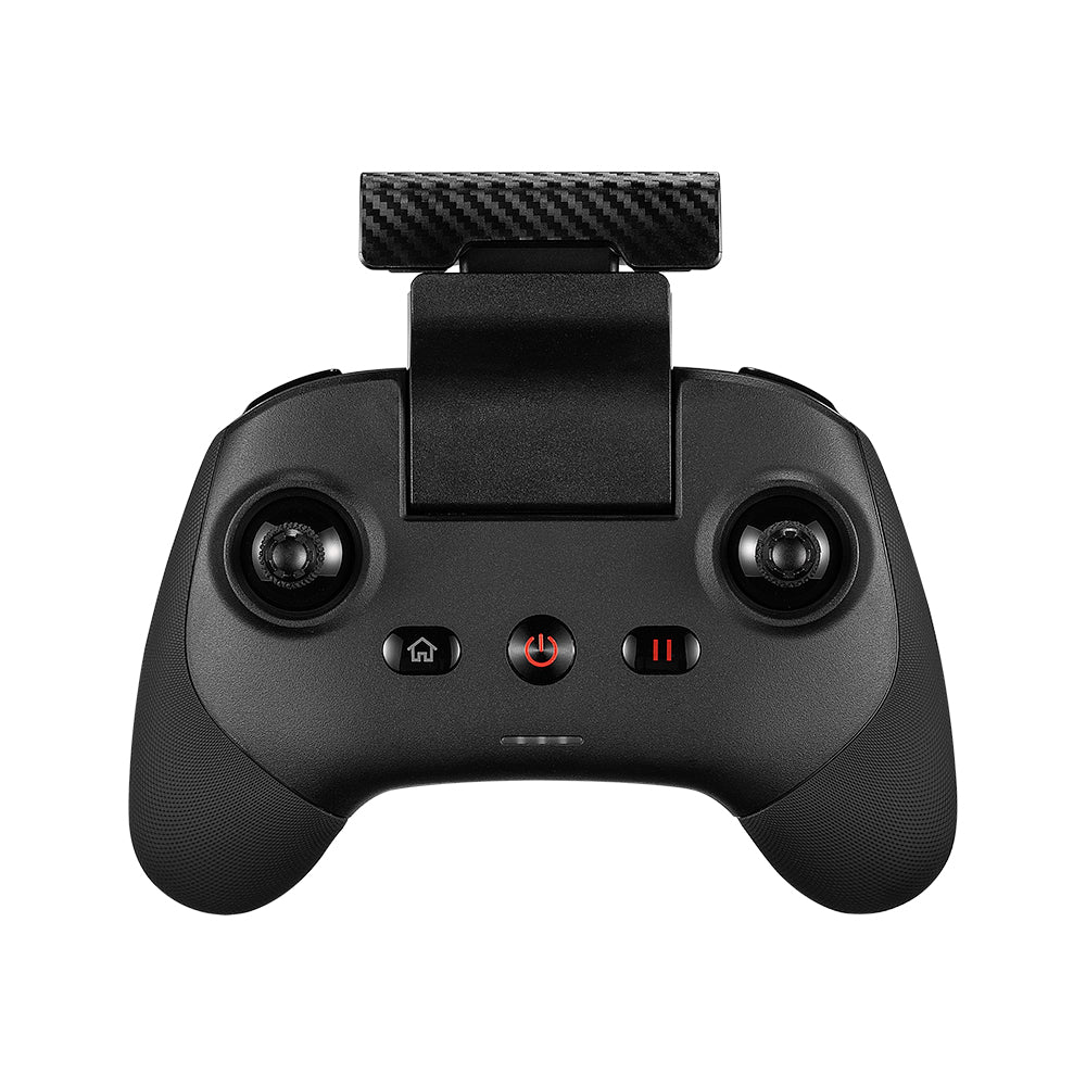 Il telecomando dell’Autel EVO Lite+ ha un design ergonomico, con due impugnature allungate che lo fanno sembrare simile a un controller per console di videogiochi. Nella parte superiore del telecomando, un supporto pieghevole è predisposto per sostenere il smartphone.