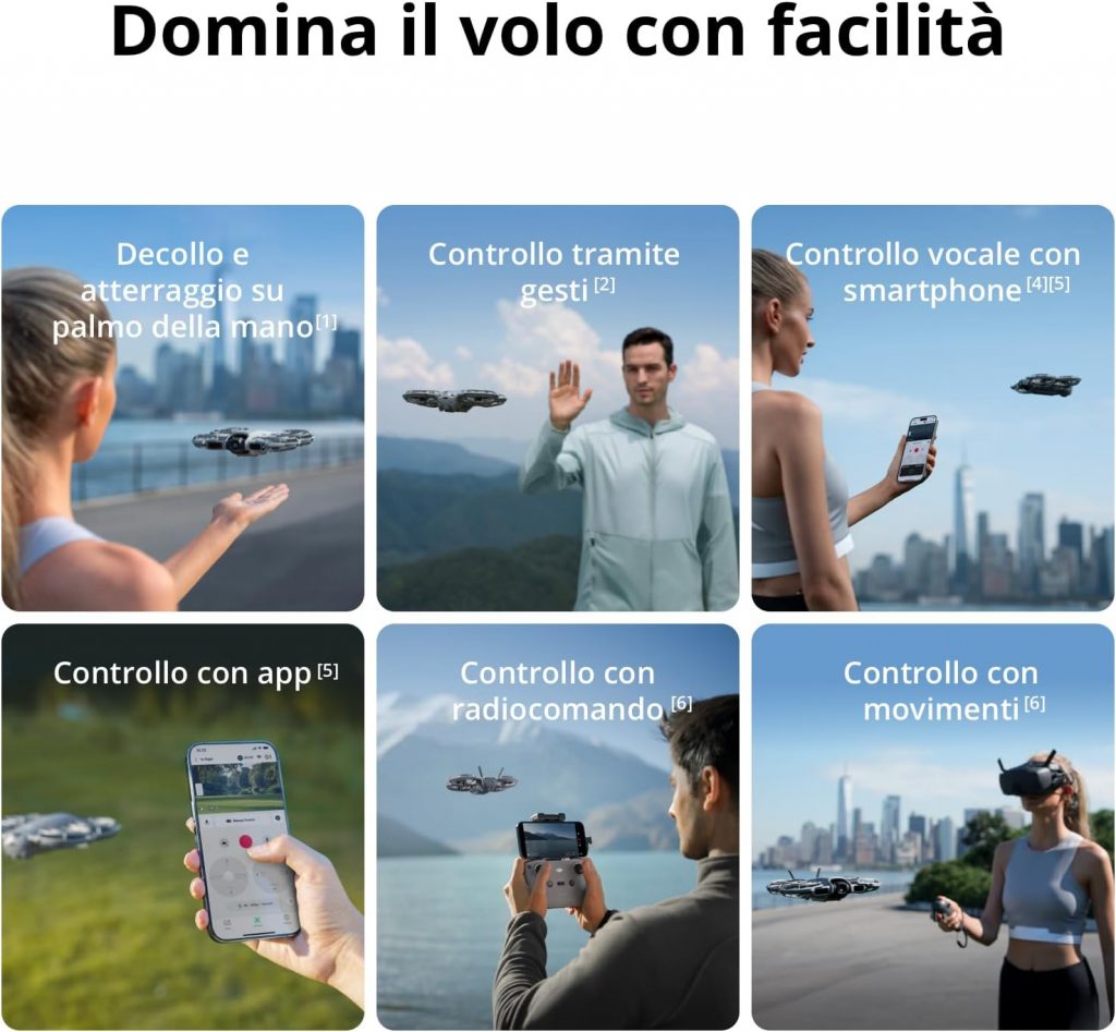 Una delle novità more entusiasmanti del DJI NEO 2 è il sistema di controllo gestuale, che rende l’esperienza di volo ancora più immersiva e intuitiva. Ecco come funziona: