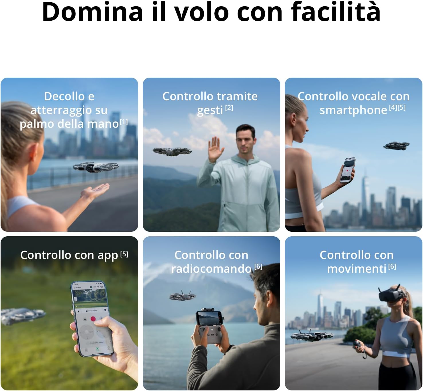 Una delle novità more entusiasmanti del DJI NEO 2 è il sistema di controllo gestuale, che rende l’esperienza di volo ancora più immersiva e intuitiva. Ecco come funziona: